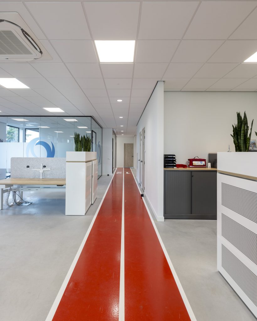 Met trots kijken wij terug op het project PROM’ES te Bleskensgraaf. Vanaf ons eerste gesprek in ons Experience Center was er vertrouwen, wat resulteerde in een prettige samenwerking. Petra van PROM’ES werd doorverwezen door Pim Muller, de ontwerper van het pand. Namens Jaleco hebben wij de volledige afbouw van het project verzorgd. Dit omvatte metalstudwanden, systeemplafonds, aftimmerwerk, saus- en lakwerk, volglaswanden, enz. Een bijzonder element was de aanleg van een atletiekbaan op de begane grond van het kantoor. Het realiseren van een atletiekbaan in een kantoorruimte was een nieuwe en interessante uitdaging voor ons. We wensen Petra en haar team veel plezier in hun nieuwe pand. Ook bedanken we Pim Muller voor het voordragen.