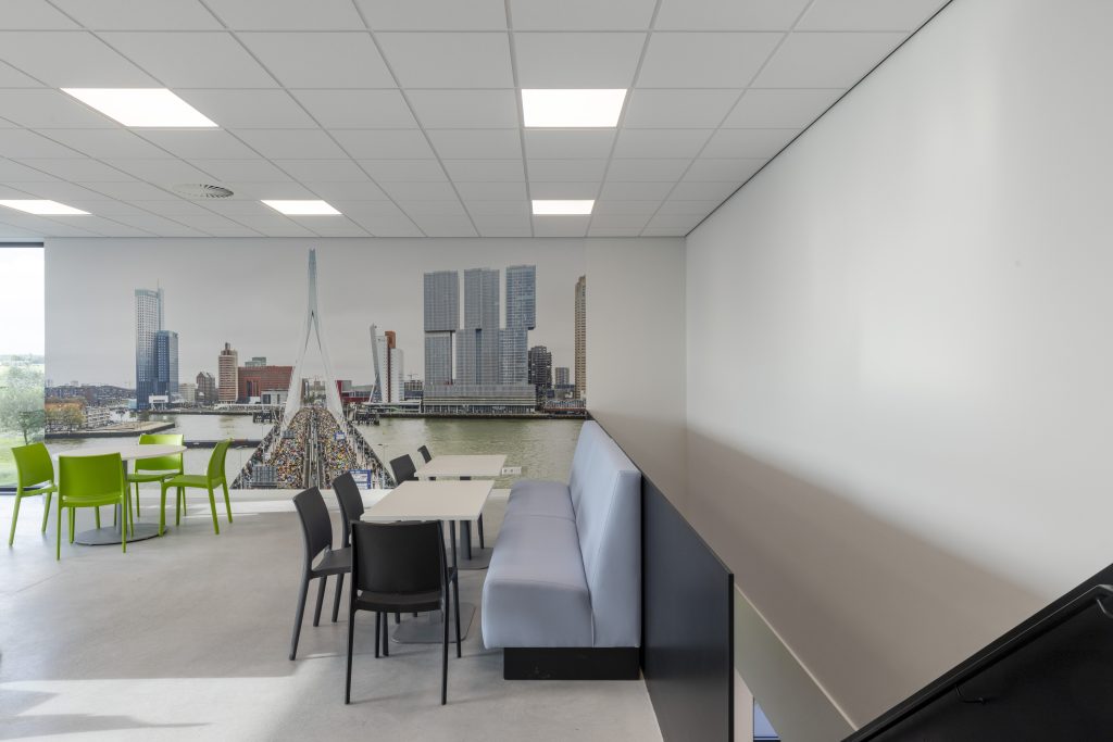 Daarnaast hebben we het aftimmerwerk verzorgd en diverse plafondkoven gerealiseerd. In de algemene hal hebben we akoestische wandpanelen geplaatst en koven gemonteerd. Verder waren we verantwoordelijk voor circa 2000 m² systeemplafond Rockfon Krios, 600 m² houten plafonds en koven, 3000 m² metalstudwanden, 400 m² akoestische wandpanelen en 350 m² gipsplafond en HPL plafond. Ook het complete stuc- en sauswerk viel binnen onze scope.